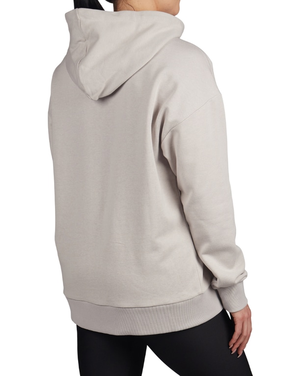 En stilren hettegenser i avslappet stil med det lille ekstra. Vrangbordene nederst på genseren og nederst på ermene holder kulden ute, samtidig som de føles behagelige mot kroppen. Genseren har en diskret modell og passform, slik at den passer til stort sett hva som helst! For et komplett treningsantrekk anbefaler vi våre treningstights eller joggebukser.
