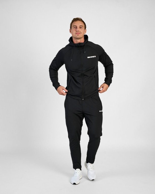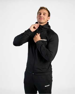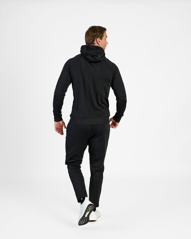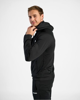 En trenings hettegenser for menn i samme vakre materiale som Loose Pants. Et lett og mykt materiale som puster og transporterer bort fukt. Den har glidelås foran og en høy krage som er komfortabel mot halsen. Frontlommer som er utstyrt med glidelås, slik at mobil eller nøkler kan oppbevares trygt.