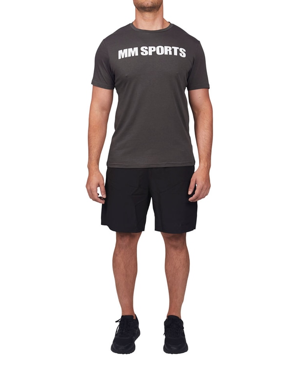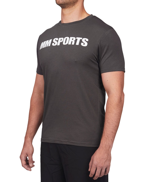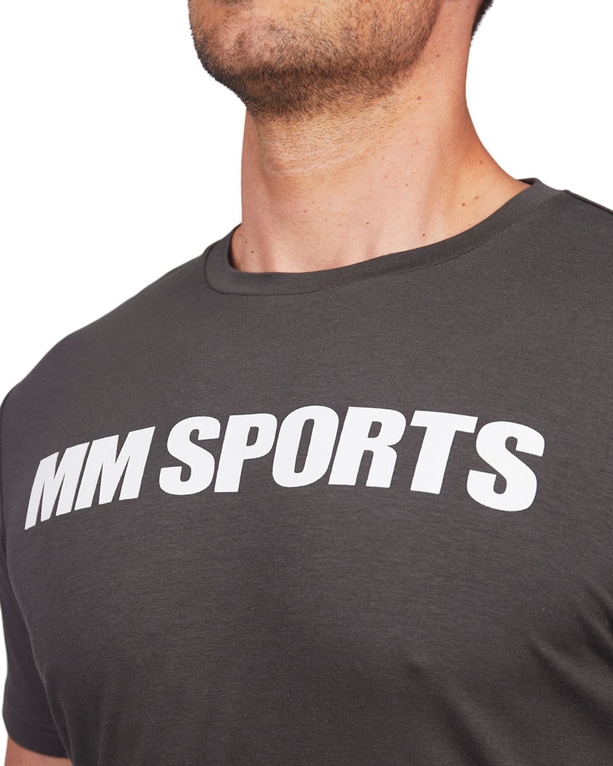 En T-skjorte med avslappet stil og passform. T-skjorten har en passform som er utformet for å fremheve overkroppen. Dermed passer den optimalt til trening, men den fungerer naturligvis også godt som en del av et hverdagsantrekk. Svart og stilren MM Sports-logo foran.