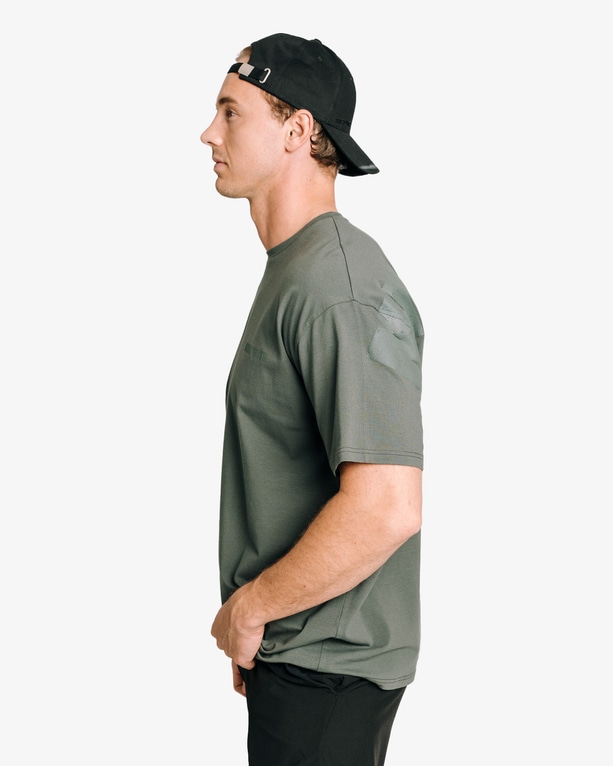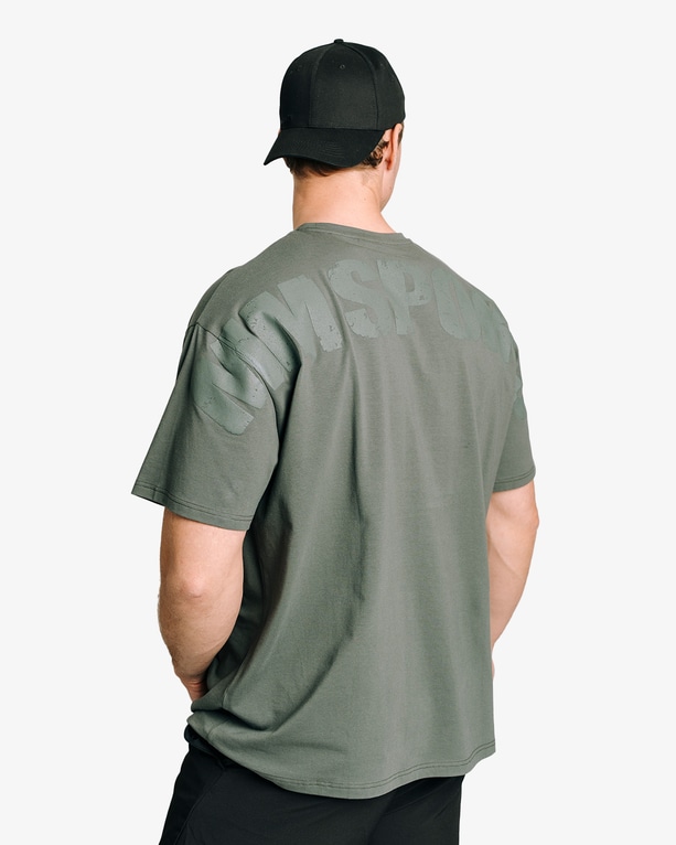 Kul trenings t-skjorte med overdimensjonert passform og fallne skuldre som styrker overkroppen. Vårt klassiske hardcore-trykk bak over skuldrene. Behagelig å ha på under oppvarmingen med en genser under eller som den er under hele treningen. Med løs passform og god kvalitet vil dette være din favoritt t-skjorte og hjelpe deg gjennom hver treningsøkt.