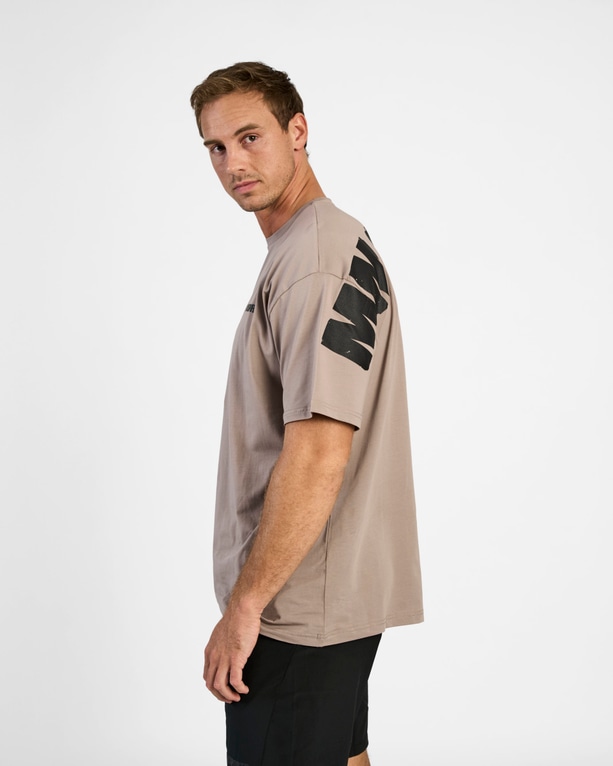 Kul trenings t-skjorte med overdimensjonert passform og fallne skuldre som styrker overkroppen. Vårt klassiske hardcore-trykk bak over skuldrene. Behagelig å ha på under oppvarmingen med en genser under eller som den er under hele treningen. Med løs passform og god kvalitet vil dette være din favoritt t-skjorte og hjelpe deg gjennom hver treningsøkt.