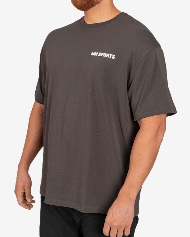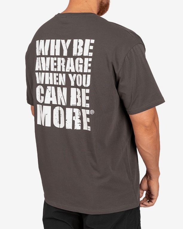 Kul trenings t-skjorte med overdimensjonert passform og fallne skuldre som styrker overkroppen. Nå i ny design med et stilfullt trykk på ryggen - Why be average when you can be more.