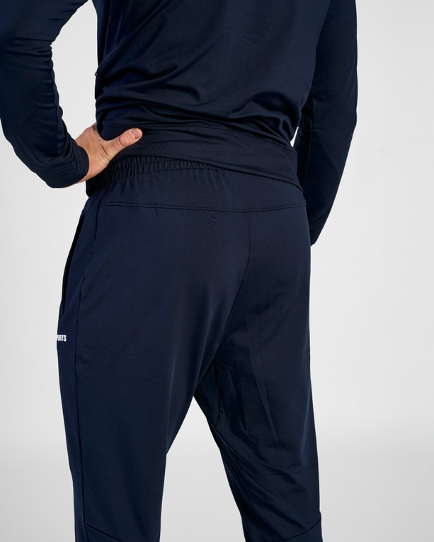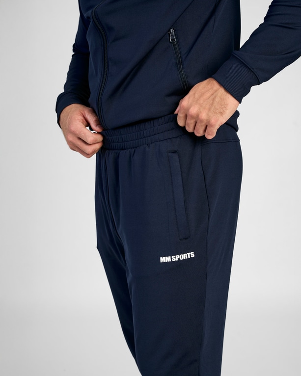 Et par stilige og behagelige treningsbukser med normal passform. De har et enkelt og rent design som gjør at de passer til det meste. Passformen er komfortabel og smidig over lår og legger, noe som gir et flatterende og atletisk utseende uten å være for tettsittende. Buksene er laget av et mykt og stretchy materiale, og har en komfortabel strikk i midjen. Lommer på hver side med glidelås gir god oppbevaring. MM Sports-logoen er diskret plassert i hvit skrift på toppen av låret, som gir en fin og stilig detalj.