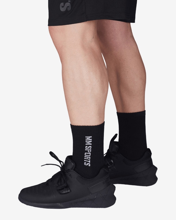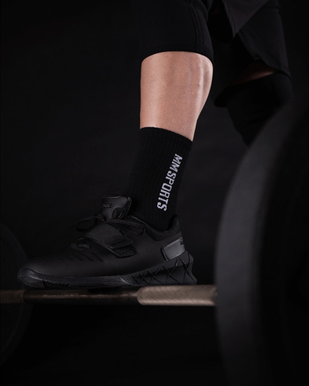 Stabil bakkekontakt er ekstremt viktig, spesielt ved tung trening av beina med knebøy, utfall og lignende øvelser. MM Sports vektløftersko har en flat og stabil såle som gir den riktige følelsen. Med den opphøyde hælen blir det enklere for deg å finne en god vinkel i kne- og hofteledd.