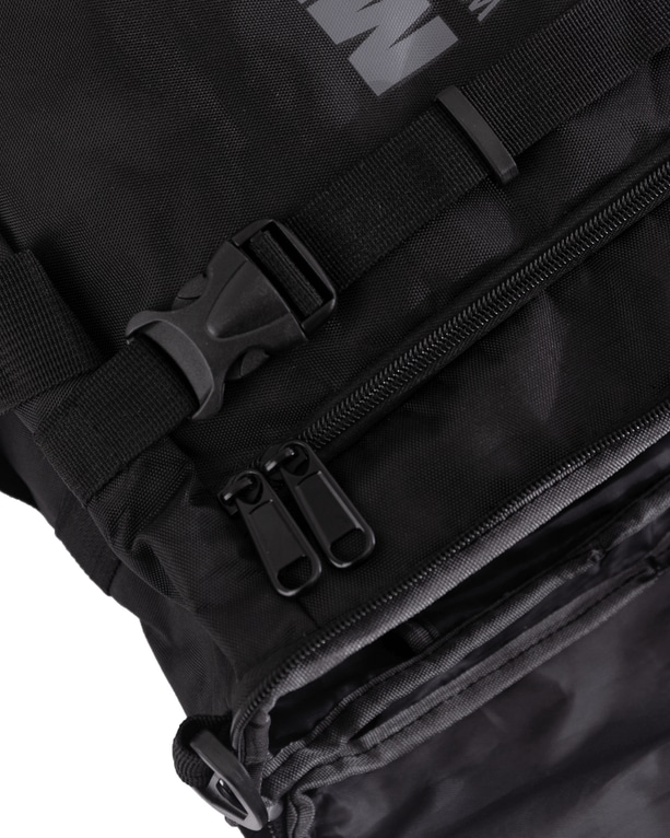 En stilig treningssekk med et stort lagringsrom som kan åpnes fra to steder. Sekken er utstyrt med to spenner utenpå det store rommet som hjelper til med å stramme inn en fullpakket sekk. I bunnen av sekken er det et smart skofack som gjør at man kan holde skoene separert fra andre eiendeler. Inni sekken er det et smart innerrom for oppbevaring av din bærbare datamaskin.