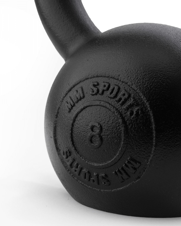 MM Sports kettlebells er robuste kettlebells som er laget av støpejern og har pulverbelagt svart matt overflate for en glattere og mer behagelig følelse.