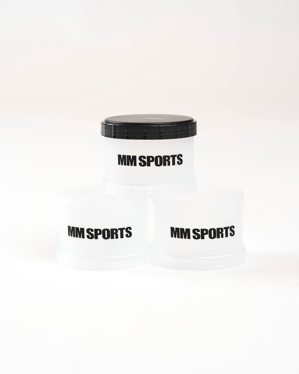 MM Sports PowerTower® er en fleksibel og justerbar beholder for kosttilskudd som protein-, gainer-, pre- og postworkout-pulver, kapsler, tabletter, vitaminer og lignende kosttilskudd, og den passer like godt til tannbeskytter, klokke, smykker med mer. MM Sports PowerTower® består av tre individuelle beholdere som kan skrus sammen eller fra hverandre, avhengig av hvor mange tilskudd eller ting du skal ha med deg til treningen. Hver beholder rommer 180 ml og finnes i svart eller gjennomsiktig plast med svart eller rosa lokk. også perfekt for deg som reiser og trenger enkel og praktisk oppbevaring.