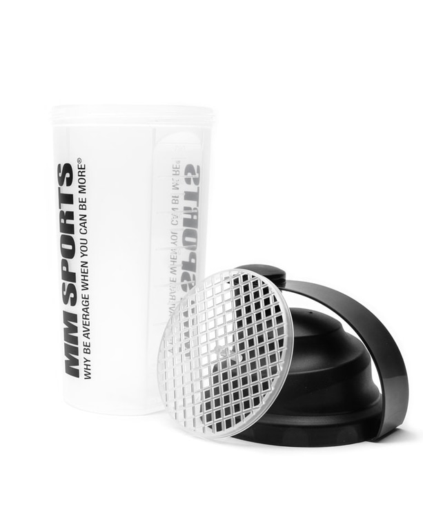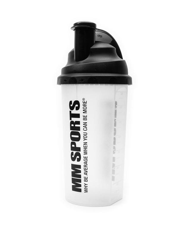 MM Sports Shaker har en transparent flaske slik at du ser hva innholdet er. Rommer 700 ml og har en tydelig gradering som sørger for riktig dosering. MM Sports Shaker har et svart, tett skrulokk slik at du kan pakke drikken sammen med treningsklærne dine. Risten, som kan fjernes, bidrar til at pulveret blandes bedre og hindrer klumpdannelse i shaken.