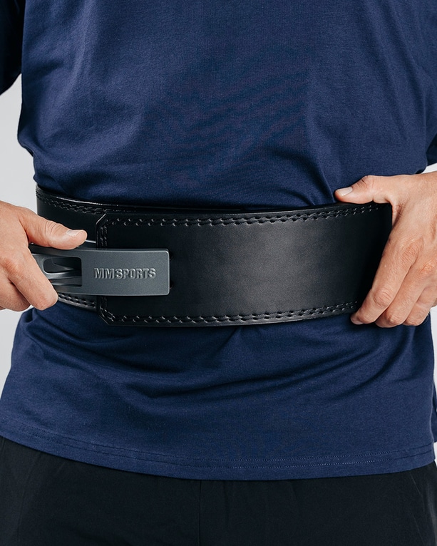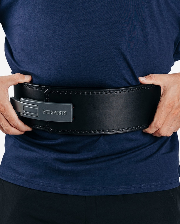 MM Sports Lever Belt Premium er et løfterbelte med en utrolig rask, enkel og smidig låsemekanisme. Når du er klar til å løfte, strammer du beltet enkelt ved å trekke fram hurtigspennen – etter løftet eller settet løsner du beltet raskt ved å dra spennen oppover for å sette den i hvilemodus. Takket være denne geniale løsningen kan du raskt løsne beltet mellom settene uten å måtte ta det av.