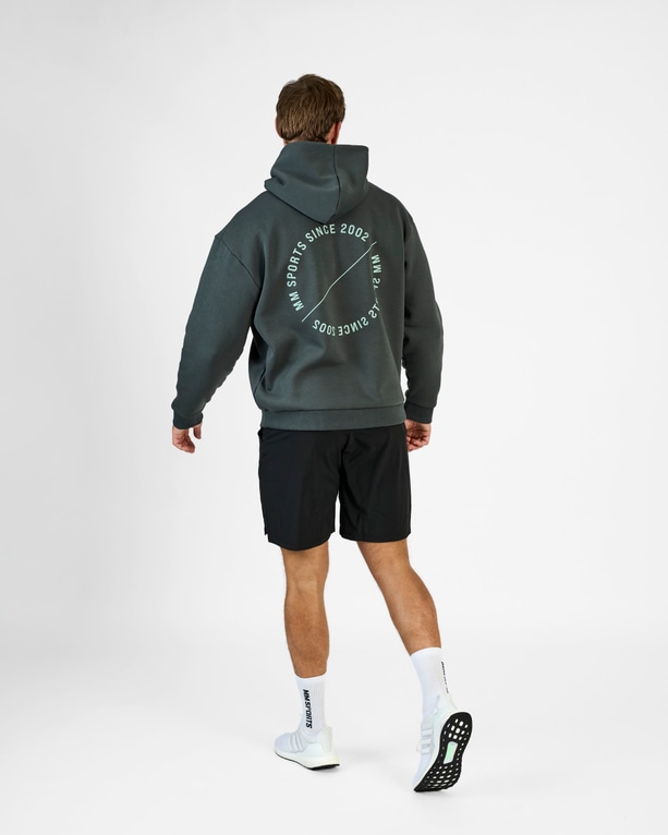 En hoodie med oversized passform og attitude. Laget i en myk bomullsblanding som sitter behagelig og holder formen. På ryggen prydes den av et stort, rundt MM Sports-trykk som gir et tydelig og stilrent uttrykk. Mansjetter ved ermeavslutning og nederkant holder genseren på plass og stenger ute kulden.